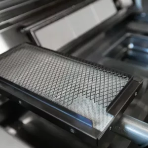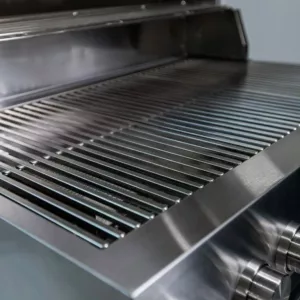 Nästan hela grillen är tillverkad i rostfritt stål med materialtjocklek mellan 1,2–3 mm beroende på funktion. Även de svartlackerade ytorna är i rostfritt stål, vilket ger ett överlägset korrosionsskydd.