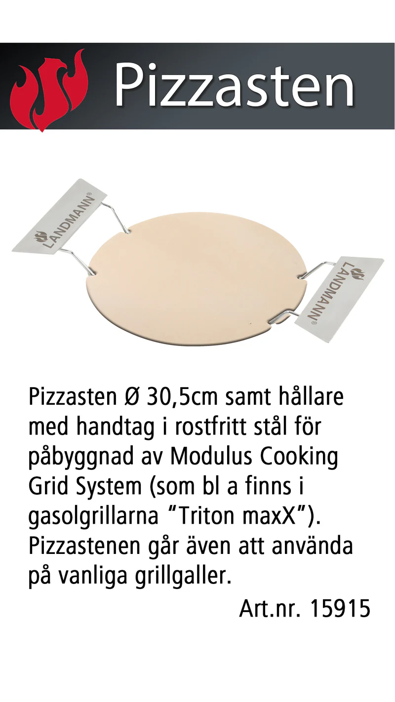Skapa stenugnsbakad pizza hemma med Landmann Modulus Pizzasten (Ø30,5 cm). Den värmetåliga cordierite-stenen ger en krispig botten och jämn värmefördelning – perfekt för pizza, bröd och bakverk.
